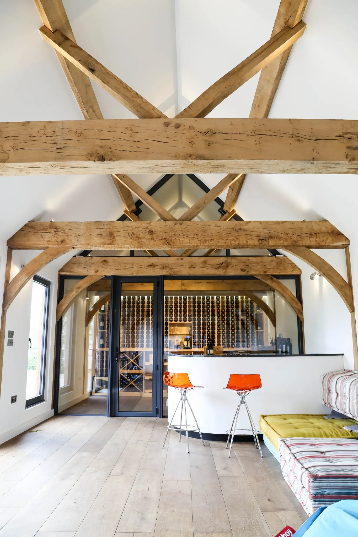 Exposed structural oak beams and timber framing